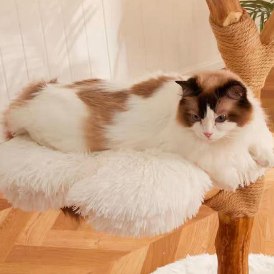 【雲にのる】ふわふわ雲ベッド×天然木ステップ台|北欧風・低段キャットタワー(翌営業日発送可)