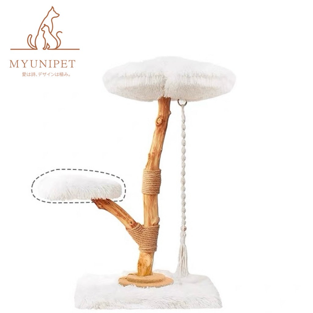 MyUnipetはペットと人が一緒に心地よく過ごせるために、5年から10年かかり成長した木を一本一本厳選し、木本来の質感や風合いをそのまま残し、キャットタワーとしての安定感と品質をご提供いたします。