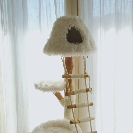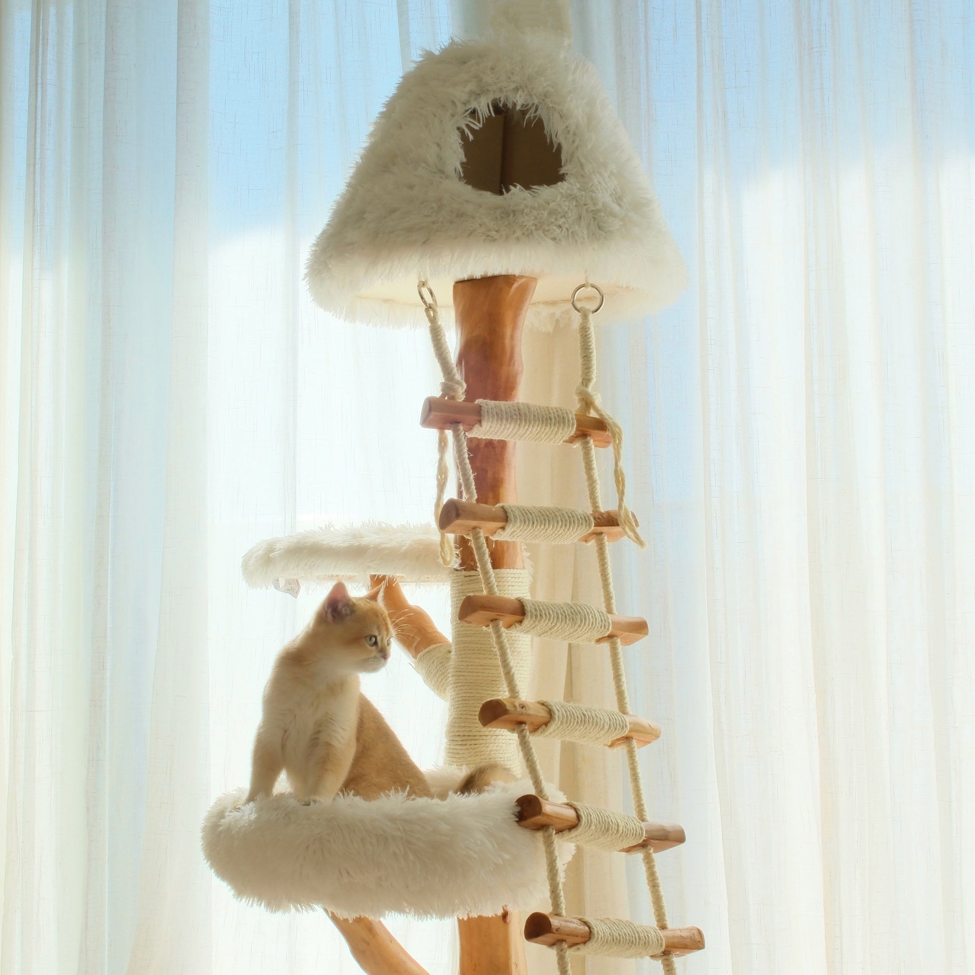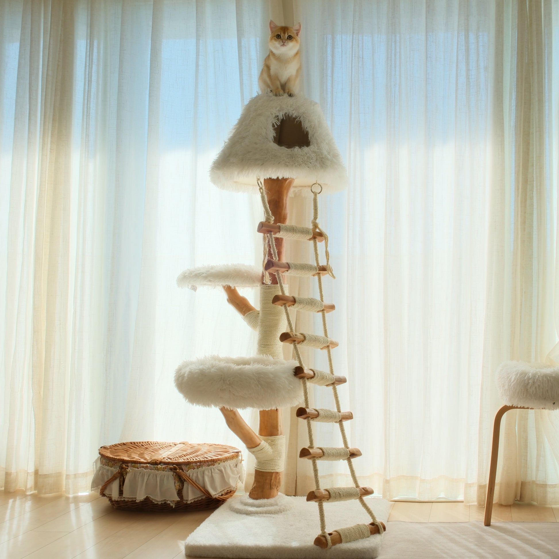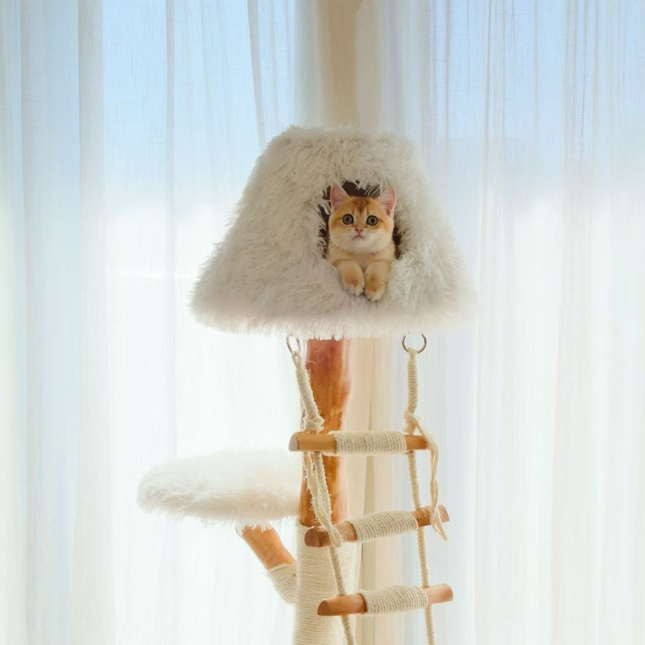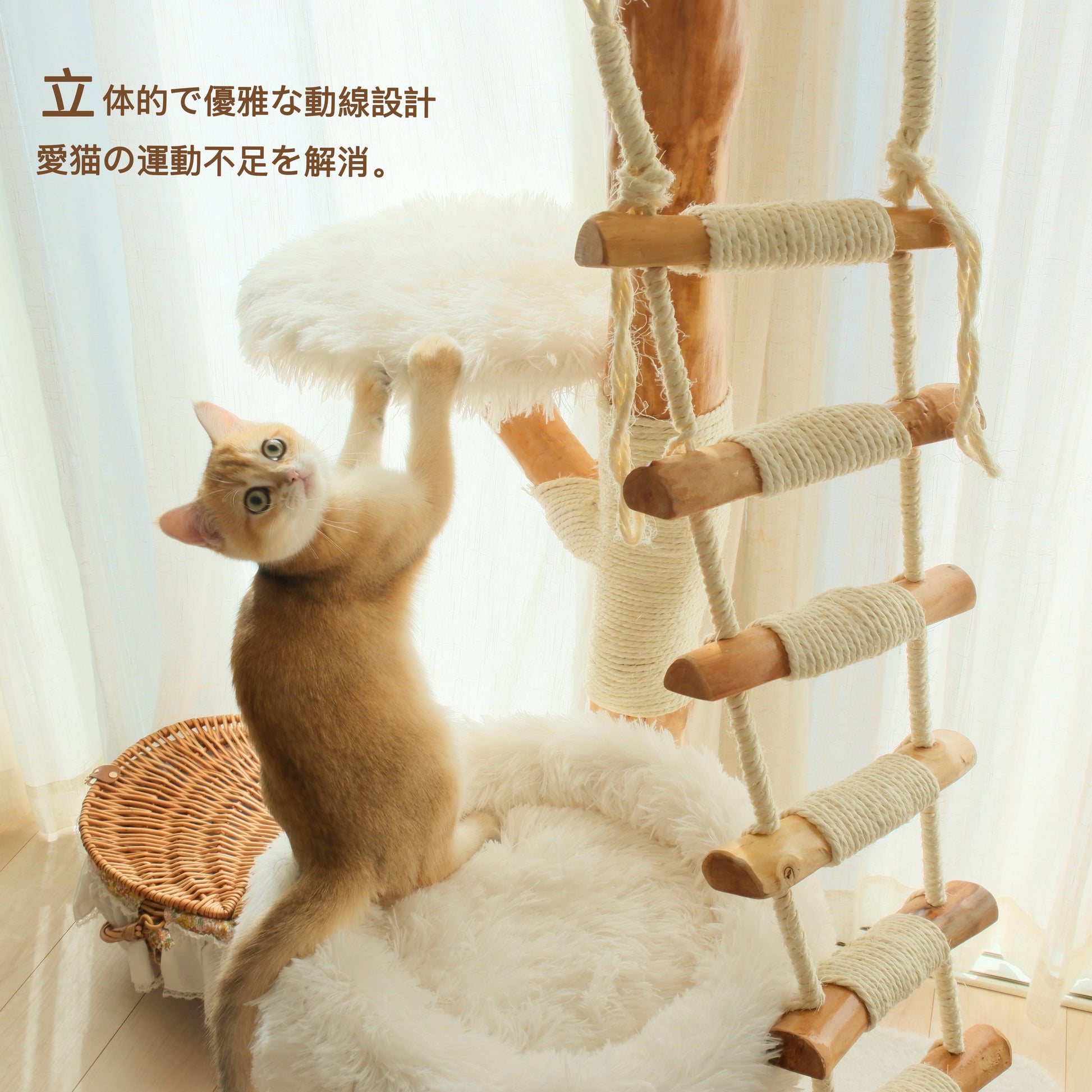 Cat miss Tree. 猫はいつも木が好きでしょう。Cmisstreeシリーズは元の木を丸ごと生かしているため、猫と人が温もりある肌触りを感じられることができます。湿気の多い時には空気中の水分を吸い、湿気が少なければ放出するという調湿作用もあります。いわゆる「呼吸をしている」キャットタワーです。